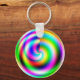 Digital art in a fun and colourful wheel design in shades of pink, blue, green and yellow.