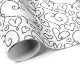 This wrapping paper features a whimsical pattern of scattered hearts in black and white to colour in your own unique style. Colouring fun for kids and adults, too!