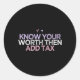 Coloured He Know Your Worth Then Add Tax Classic Round Sticker