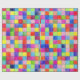 Squares of graph paper coloured in by hand with coloured pencils in random colours.  No two adjacent squares have the same exact colour. Graph paper squares outlines are made up of light blue lines.
