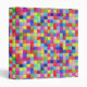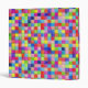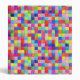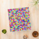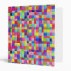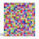 Squares of graph paper coloured in by hand with coloured pencils in random colours. No two adjacent squares have the same exact colour. Graph paper squares outlines are made up of light blue lines.