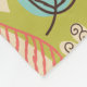Pretty, artistic, fun, and cheery best describes this flower, birds, and butterflies design fleece blanket. A green background with leaves of coral and aqua with butterflies, hearts, and a cream bird.