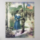 This early 20th century US Military History print features an African American soldier in uniform bidding farewell to his wife or girlfriend on the walkway. In the backdrop is a street with soldiers marching with the American Flag and preparing to join the war and contribute. The print reads, ‘Coloured Man Is No Slacker.’ Artwork by Edward George Renesch, 1918.