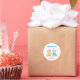 These coordinated round sticker labels are adorned with the theme of twin babies celebrating a special occasion. One baby is dressed in a baby blue t-shirt while the other is in pink, both topped with crowns and embellished with flower pins, creating a sweet and cozy atmosphere. Customization is a breeze; simply hit the 'customize it' button to rearrange and adjust the text style your preference. These stickers make the perfect addition to thank-you gifts, enhancing the joy of birthday celebrations with a charming finishing touch!