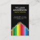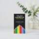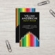 Professional business card template for artists, graphic designers, illustrators or other visual art related fields with rainbow coloured pencils on black.