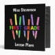 Start out the new school year with this fun First Grade binder which can be personalized with the teacher's name and what it will be used for. The design consists of 7 different coloured pencils next to each other with the words " First Grade", each letter in a different colour, over them. Don't forget to add this binder to your back-to-school list of essentials.