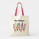 This is the perfect back-to-school tote back for a kindergarten teacher to carry all her teaching goodies in. The design on the tote bag consists of 7 coloured pencils at different angles next to each other with the word "Kindergarten" across the pencils. This design is colourful and fun and can be personalized with the teacher's name on it.