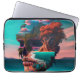 A skull head has been completely coloured in an abstract style to bring you into the world of creativity and surreal design, in the style of photo-realistic landscapes, tropical landscapes, futuristic realism, pixelated realism, light crimson and sky-blue, surrealistic dreamscapes