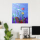 Poster with my original artwork of a yellow and pink angelfish and a blue and yellow angelfish, swimming in opposite directions.