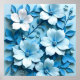 Beautiful arrangement of paper flowers in various shades of blue, combined with green leaves. The background is a soft blue that complements the flowers