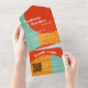 Colourful 70s Retro Abstract Photo QR Code Wedding All in One Invitation