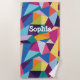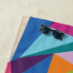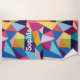 This beach towel features an abstract bold and colourful design of geometric shapes. Customize your design by easily adding a name, featured in white font.
