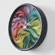 Add a splash of colour to your home with this stunning abstract wall clock. Featuring a mesmerizing swirl of rainbow hues, this unique timepiece is sure to be a conversation starter. Perfect for modern and contemporary interiors.