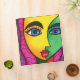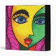 This abstract design is of a girls face in vibrant colours of yellow and green with pink hair, creating a dynamic and energetic piece of art. her eyes are a pretty shade of blue that sparkle with curiosity and warmth. Her lips are a bold shade of red depicting confidence. Overall a fun abstract illustration of a girls face celebrating colour, energy and beauty.