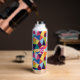 This insulated water bottle features an abstract bold and colourful design of geometric shapes. Customize your design by easily adding a name, featured in white font.