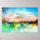A print that depicts a beautiful abstract watercolor painting of blue, green, and peach tones.