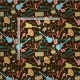 Colourful assorted musical instruments seamless pattern over black background. Beige blue and yellow