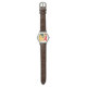 I like the illustrative watch with the lady on it. It is a great reminder that I am blessed and it has a very sturdy leather band. The colors are true and vibrant. Love the color of the Leather also. Very nice.
