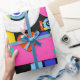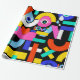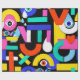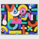 Colourful abstract pattern with word love inside,eyes,tears,colour blocks. Pattern illustration with bright colour-blocking shapes. Trendy colourful pop art geometric pattern with bold shapes on black.