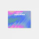 These custom post-it notes feature a colourful pastel abstract design that has hues of pink, blue, orange, and green. At the top of the pad, there is the personalized text which you can customize with your information.