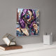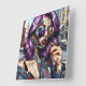 Colourful Abstract Pretty Lady with Purple Hair Square Wall Clock