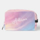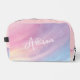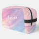 Introducing PIxeliaDesigns' Rainbow Pastel Dopp Kit Bag, featuring a Colourful Pastel Abstract Rainbow Pattern in a soft, pink purple hue that brings a touch of whimsy to your daily routine. Perfect for dance, gym, travel, and outdoor activities, this versatile bag combines functionality with a girly rainbow abstract pattern, making it a fashionable accessory for those on the go. Its colourful pastel design not only stands out but also inspires joy and creativity in your adventures. Adding a personal touch, this Dopp Kit Bag offers a customization option to include your name, making it uniquely yours and easy to spot.