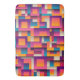 A bath mat with a colourful abstract background. Bold and exciting colours - pink, blue, orange and more.