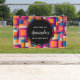 Birthday banner with a colourful abstract background. Bold and exciting colours - pink, blue, orange and more.