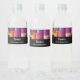 Event water bottle labels with a colourful abstract background. Bold and exciting colours - pink, blue, orange and more.