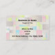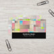 An abstract illustration with large and small squares and rectangles with intersecting lines. This creative design has contrasting  pastels and brights in the colours of cream, rose pink, lime green, light brown and bright blue.  A black border at the bottom is perfect for entering your business name and title, in an easy to read white font. Nice style for a generic business card design.