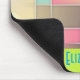 Personalize with a name on a light yellow green backdrop. The top portion of the mousepad is an abstract illustration with large and small squares and rectangles with intersecting lines. This creative design has contrasting pastels and brights in the colours of cream, rose pink, lime green, light brown and bright blue.