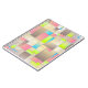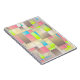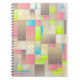 An abstract illustration with large and small squares and rectangles with intersecting lines. This creative design has contrasting pastels and brights in the colours of cream, rose pink, lime green, light brown and bright blue.