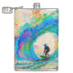 Colourful Abstract Surfer in The Barrel Wave Hip Flask