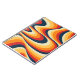 Abstract illustration of colourful retro style swirl design in beige, orange, yellow, red and dark blue colours