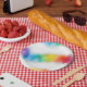 Colourful Abstract Template Modern Rainbow Colours Trendy Pink Red Blue Purple Yellow Green Round Paper Plate.