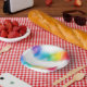Colourful Abstract Template Modern Rainbow Colours Pink Red Blue Purple Yellow Green Round Paper Bowl.