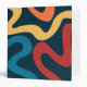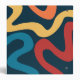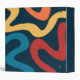 Abstract contemporary art design with colourful (blue, red, yellow, orange) waves decoration on navy blue background