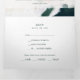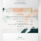 This colourful abstract wedding invitation is perfect for your unique modern boho wedding. Hand-painted with textured brush marks of dark emerald green, peach, and mustard, all overlayed with a minimalist transparent square, it's sure to give your occasion a simple yet rustic bohemian feel.