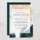 This colourful abstract wedding brunch invitation is perfect for your unique modern boho brunch. Hand-painted with textured brush marks of dark emerald green, peach, and mustard, all overlayed with a minimalist transparent square, it's sure to give your occasion a simple yet rustic bohemian feel.