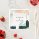 These colourful abstract wedding napkins are perfect for your unique modern boho wedding. Hand-painted with textured brush marks of dark emerald green, peach, and mustard, all overlayed with a minimalist transparent square, it's sure to give your occasion a simple yet rustic bohemian feel.