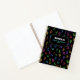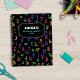 Back to school notebook personalized with name and subject, with a pattern of colourful letters, big and small.