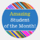 This colourful, inspirational sticker design features the message "Amazing Student of the Month!". A sticker like this might be used to help encourage a student. [~Z0000317]
