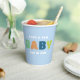 Celebrate the baby to be at a shower with colourful and modern colour palette orange, green, mint, navy and sky blue. These sweet personalized paper cups add a special touch to the shower decor with pops of colour and fun, casual fonts.