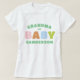 Celebrate the baby to be at a shower with colourful and fun "grandma of" shirt with colours of pink, orange, green, mint, and sky blue. A fun surprise announcement gift for the grandmother to be or for the proud granny to wear at a baby shower (so everyone knows who the matriarch is) the mint green text is easily personalized with her chosen moniker and the last name of the little babe on the way.