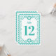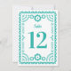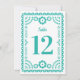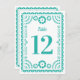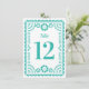 This beautiful papel picado inspired wedding table number card features an ornate frame in colourful aqua on a white background, and festive typography. This elegant yet modern design is a fabulous choice for a Latinx wedding, rehearsal dinner, engagement party, or bridal shower. See coordinating items in the collection...