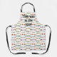 This apron has a mid-century modern design of arrows made from black lines and different shapes in retro colours of red, blue, green, orange, gold, and grey on a field of white. Keep text, change it, or delete it completely. Want the same design with different colours? Message me.
