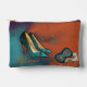 This graphic is hand-painted art inspired by the Art Deco era, the art style of the 19020s-1930s. It features high heels and a mask on a colourful orange-teal-blue background.