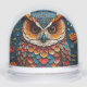 Vivid and intricately designed owl sculpture featuring vibrant colours and detailed floral elements, creating an artistic and whimsical nature-themed decorative piece.