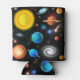 Original fine art design of planets, sun, moon, stars, nebulae and more by artist Carolyn Mcfann of Two Purring Cats Studio printed on a quality beverage can cooler.