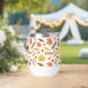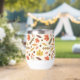 This design showcases a lively autumn-themed pattern featuring a variety of colourful leaves and acorns. The background is a light cream colour with subtle speckles, adding texture and depth to the design. The pattern includes maple leaves in vibrant shades of red, yellow, and orange, along with other leaves in warm browns, muted greens, and soft pinks. Scattered among the leaves are small acorns and clusters of berries, enhancing the fall ambiance. The arrangement is both whimsical and balanced, capturing the cozy and festive spirit of the autumn season.
